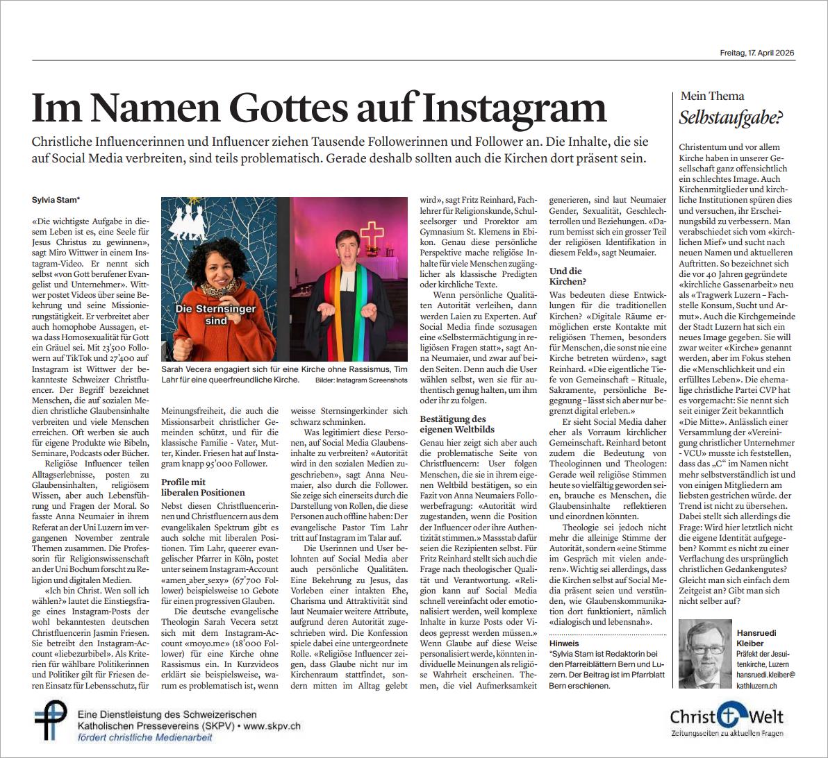 Die neuesten Beiträge aus Pfarreimagazinen und der Religionsseite Christ+Welt.
